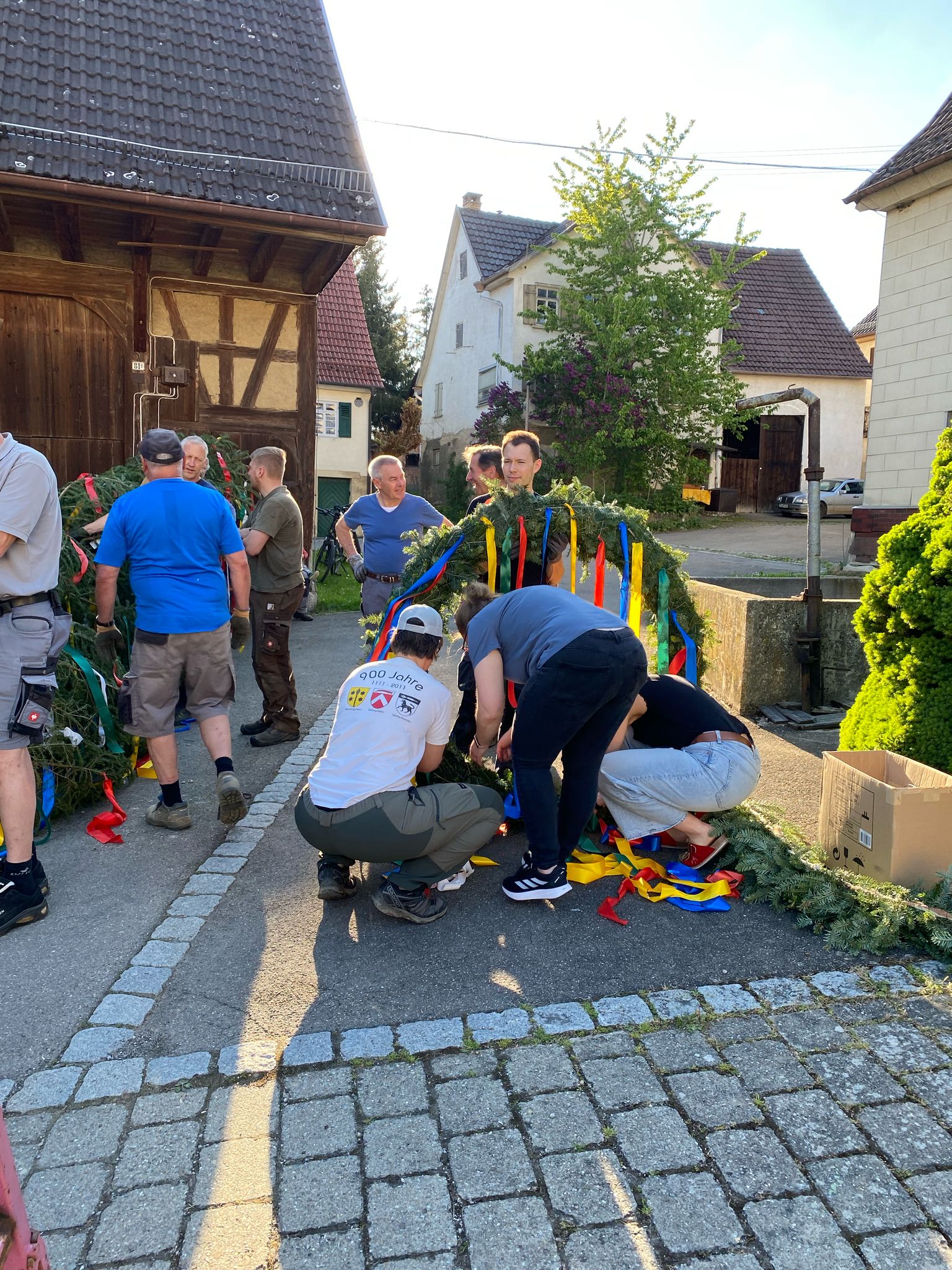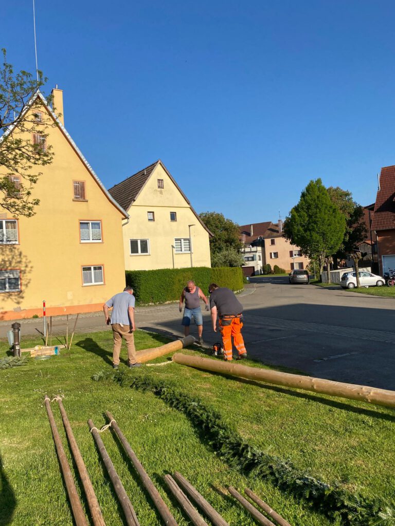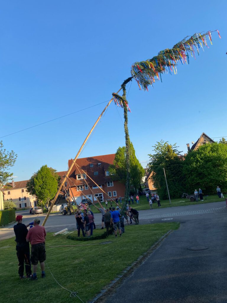 Ab dem Mai ist vor dem Tälesfest. Am 30.04.2025 haben wir wie gewohnt den Maibaum gestellt. Natürlich zwar wie gewohnt von Hand, jedoch wie immer mit etwas Starthilfe von einer richtigen Maschine – und seinem Radlader. Denn ohne, wäre das Stellen doch recht schwierig.